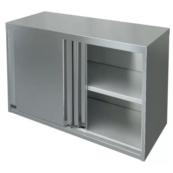 Габариты 800х400х600 мм, материал нержавеющая сталь.Двери купэ, максимальная нагрузка на полку 25 кг.