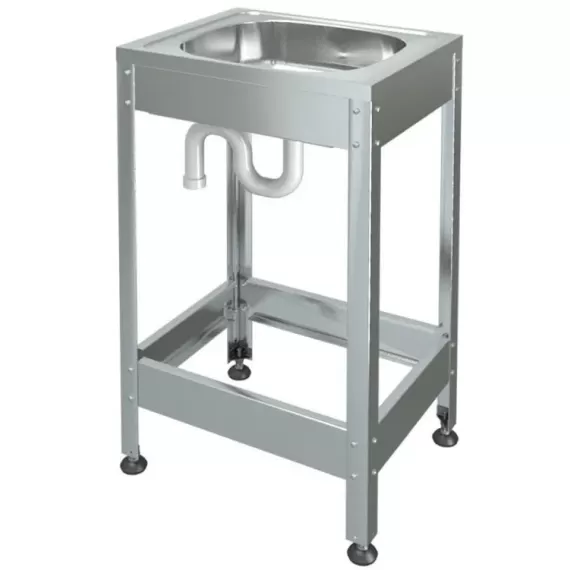 Габариты 450х500х870 мм, материал нержавеющая сталь, углок 40х40 мм.Емкость нержавеющая сталь AISI 304, без отверстия под смеситель.