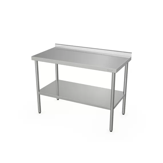 950х600х870 мм, столешница и сплошная полка - AISI430, каркас - круг.труба AISI201, 1 борт 50мм, углы столешницы заварены