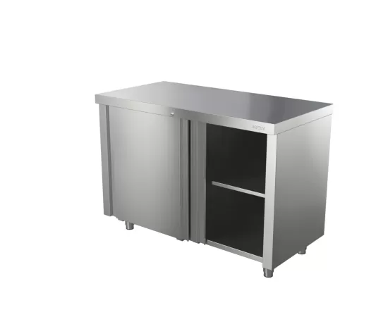 Стол СТ-С- 950.600-02-К (СТ-2/950/600), 950х600х870 мм, AISI 430, без борта, 1 полка, двери купе с замком