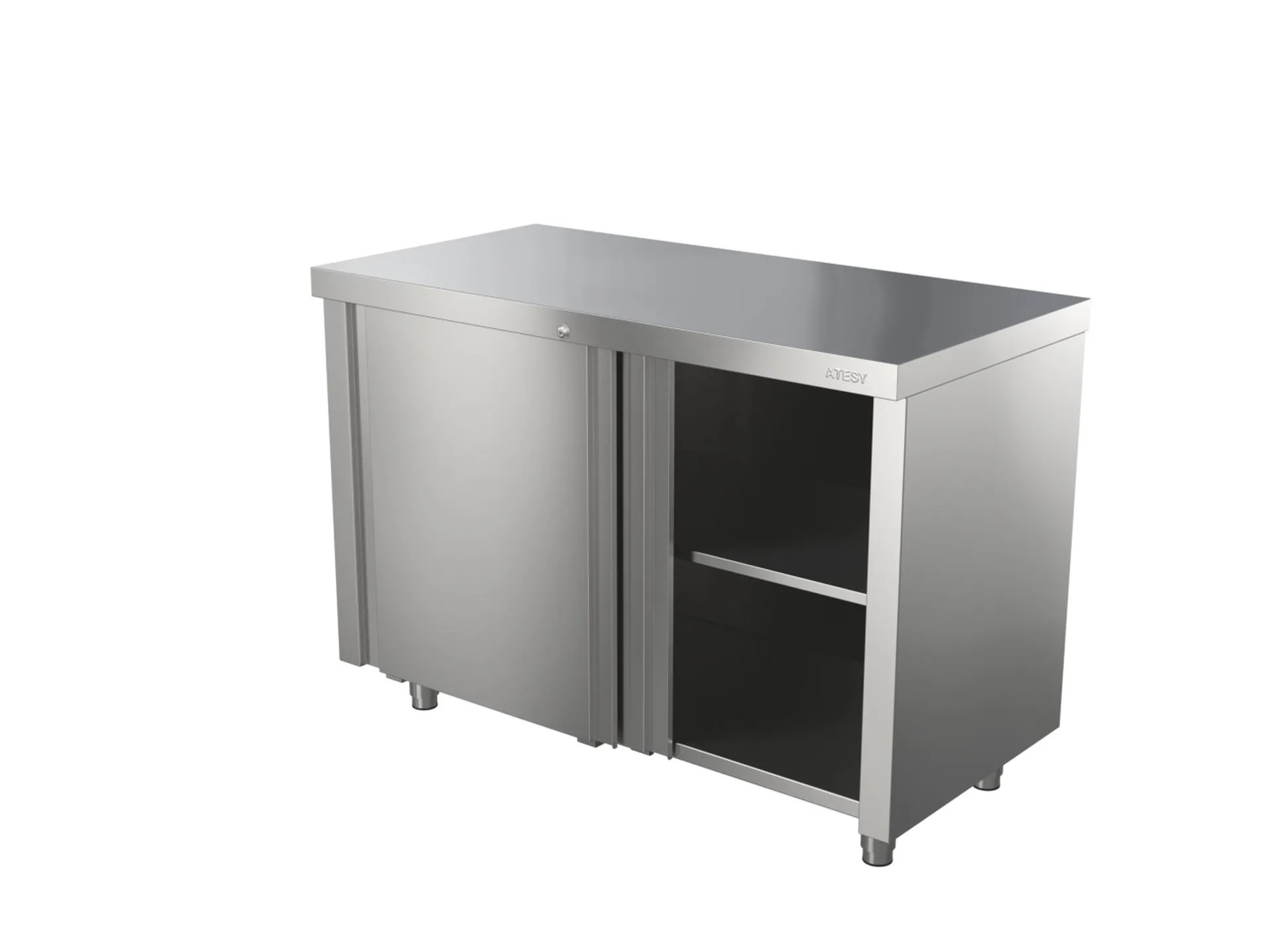 Стол СТ-С- 950.600-02-К (СТ-2/950/600), 950х600х870 мм, AISI 430, без борта, 1 полка, двери купе с замком