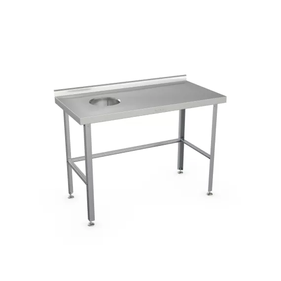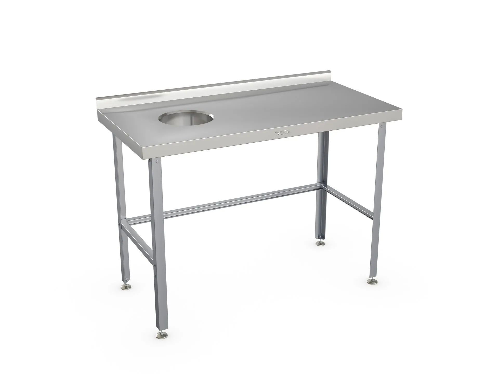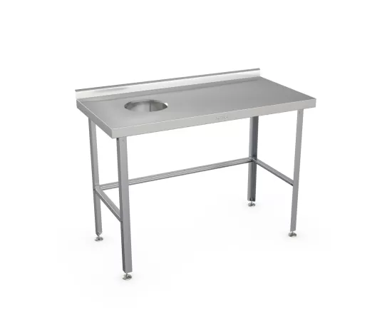 Стол для сбора отходов СРО-3/1200 левый, 1200х600х870 мм, сбортом, D отверстия - 225мм, столешница-AISI430, ножки-оц.сталь