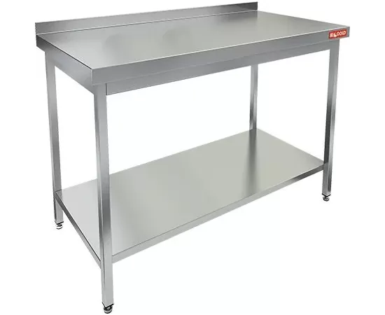 Стол открытый тип НСО 14/6БП-1 с бортом и полкой, 1400х600х850мм, нерж. сталь