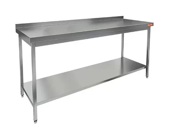 Стол открытый тип НСО 18/7БП-1 с бортом и полкой, 1800х700х850мм, нерж. сталь