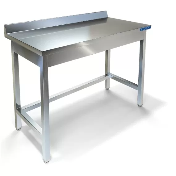 Стол производственный с объемным бортом, столешница из нержавеющей стали марки AISI 430 толщиной 0,8мм, ЛДСП толщиной 32мм. Каркас разборный из трубы 40х40 нержавеющей стали марки AISI 430 толщиной 1,2мм. Обвязка из трубы 40х20 нержавеющей стали марки AISI 430 толщиной 1,2мм. Стол поставляется в разобранном виде.