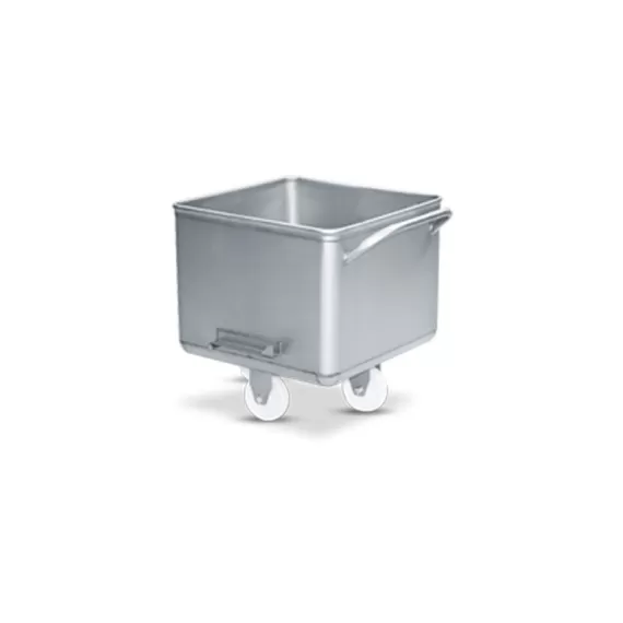Тележка чан модель ПМ-ФТЧ, V=100л (сталь 304), Толщина емкости 1,5 мм. Оснащена ручкой и четырьмя колесами, диаметр колеса 160 мм, предназначена для транспортировки, посола, созревания пищевого сырья.Чаша выполнена из стали AISI304, для колес устанавливается оцинкованный крепеж.