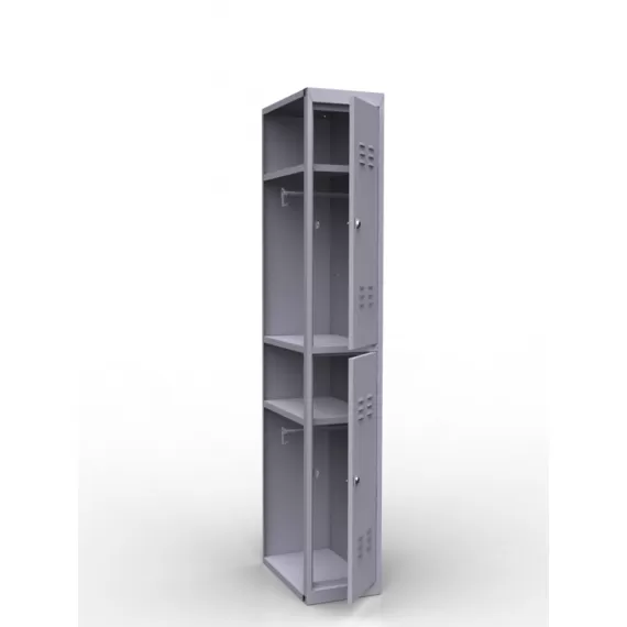 Дополнительная секция имеет полную внутреннюю комплектацию: полку для головных уборов, металлическую перекладину для вешалок и два пластиковых крючка для одежды, проушину для навесных замков.