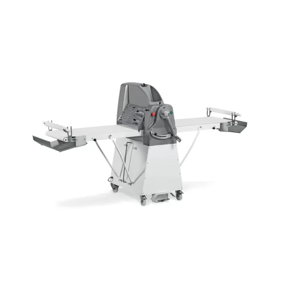 Габариты: 2700x920x1380 мм, напряжение 380В, мощность 550Вт, установка напольная, количество скоростей - 1, ширина рабочей поверхности 500 мм, ширина раскатки 500 мм, длина крыла 1000 мм, диаметр валков 60 мм, максимальный зазор между валками 36 мм, скорость вводной конвейерной ленты 11,7 м/мин, скорость выводной конвейерной ленты 17,5 м/мин. Лоток для муки. Реверс валков с помощью ножной педали и джойстика управления. Корпус выполнен из окрашенной стали, валки – из хромированной стали, защитные решётки – из нержавеющей стали, верхняя крышка – из пластика.