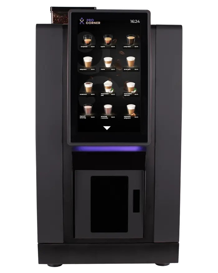 Кофемашина суперавтомат JETINNO JL28 (J) - представляет собой кофемашину, предназначенную для приготовления эспрессо и прочих напитков на его основе. В качестве сырья используется зерновое кофе. В конструкции предусмотрен сенсорный дисплей размером 14 дюймов, присутствует встроенная кофемолка Ditting EK7 с жерновами плоскопараллельного типа, 4 увеличенных контейнера растворимых ингредиентов и вместительный контейнер для кофе, система для автоматической раздачи стаканов.