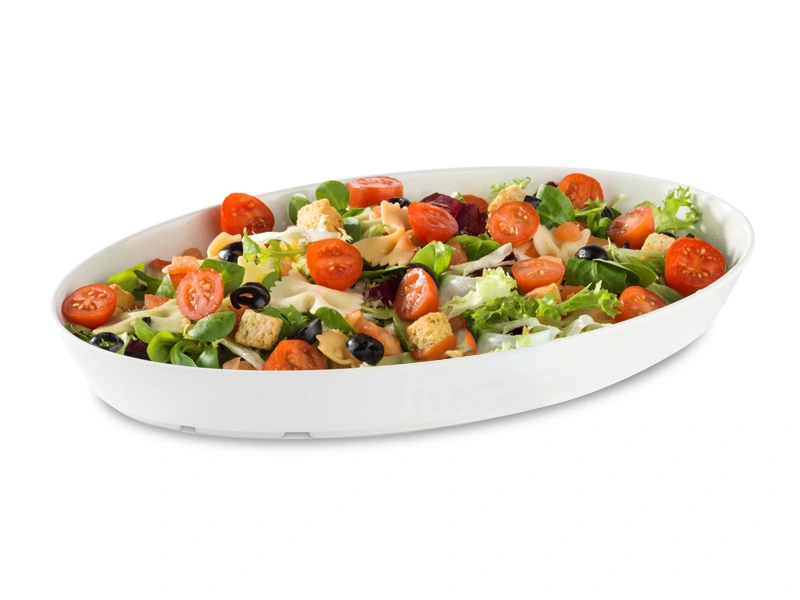 Салатник P22501. Материал: меламин. Размеры: 32,5*20 см, высота - 4см. Цвет: белый. Рекомендуется для выкладки и презентации блюд.