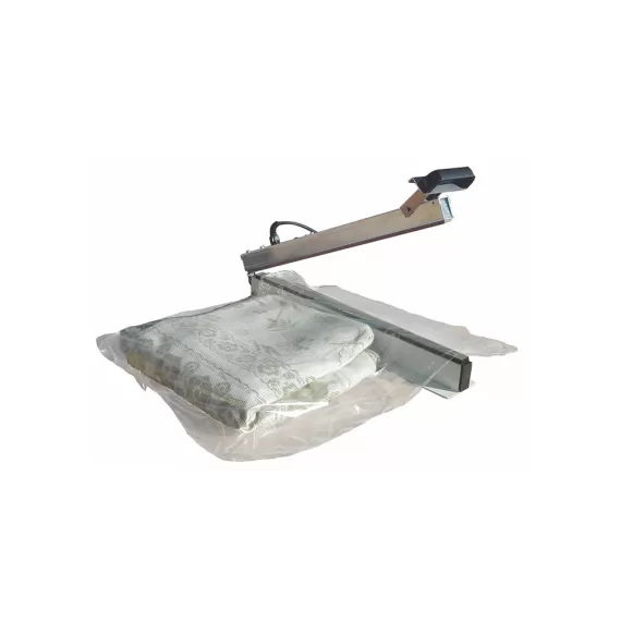 Машина упаковочная для химчисток и прачечных серии MLPS мод. MLPS L600 Портативный ручной упаковщик для запайки пакетов. корпус машины выполнен из окрашенной стали. 700х100х440мм, максимальная длинна горячей струны составляет 600 мм. 0,07кВт, 230В.