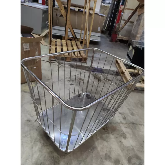 Тележка ТП-25С, 920x660x750мм, 280л, нерж. сталь, 4 колеса диаметром - 150мм. Тележка предназначена для транспортировки сухого грязного белья. Выполнена из нержавеющей стали высокого качества в виде сетчатого короба и окантовкой в виде трубки для удобства эксплуатации. Тележка установлена на 4 колеса европейского производства диаметром 125 мм., царапины. Сломаны прутья решётки.
