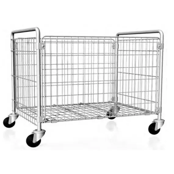 Габариты: 850x600x880 мм. Размер отверстия решетки 50x100 мм. Вместимость - 200 кг. Масса - 19 кг. Тележка для транспортировки сухого грязного белья. Выполнена из оцинкованного металла. Оснащена удобными ручками. Бесшумные, эластичные поворотные прорезиненные колеса диаметром 100 мм.