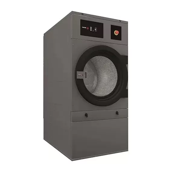 Габаритные размеры: 890х1255х1812 мм. Загрузка 26 кг (1:18), 23кг (1:20), система подогрева: электрическая, 24000Вт, 380В. Вес (нетто/брутто): 210/230 кгПроизводительность 35 кг/час. удобное управление с контролем времени и температуры. Дверь с большим проемом. Система против сминания. Диаметр/глубина барабана: 835/800 мм. Объем барабана 440 л. Диаметр дверцы: 574 мм. Корпус и фронтальная панель из окрашенной стали.Барабан из нержавеющей стали со штампованной перфорацией для обеспечения бережной обработки тканей. Реверс барабана. Смешанный поток воздуха (осевой и радиальный). Кнопка аварийной остановки. Фильтр улавливания ворса в нижней части. Мощность двигателя: 0,37 кВт. Мощность вентилятора: 0,55 кВт.