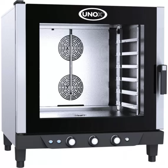 UNOX S.p.A. Печь конвекционная электр. серии XB, модель XB 693-MP (с универс. направляющими) - Печь пароконвекционная электрическая инжекторная для выпечки и гастрономии с универсальными направляющими, серии BakerLux, с функцией прямого пара (инжекторная), вместимость 6 противней 600х400мм или 6 противней GN1/1, с механическим управлением, подсветкой, 2 вентиляторами с автореверсом, без автоматической системы мойки, правой дверью с возможностью перевешивания. 380B, 10,5 кВт, Габариты: 860 x 882 x 932мм, Вес:86 кг