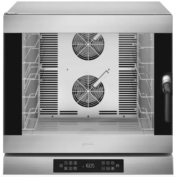 6 уровней для противней 600х400 мм или GN1/1 глубиной минимум 20 мм (в комплект не входят)Габариты 798х757х793 мм, термостат 50-280 С, таймер 1-99´+ ручной, расстояние между противнями 75 мм, внутри и снаружи нержавеющая сталь