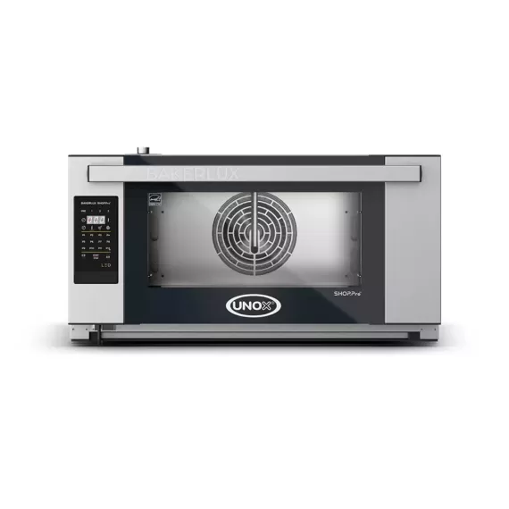 Печь конвекционная электр. т.м. UNOX серии XEFR, модель XEFR-03EU-ELDV, 800x811x425мм, Мощность: 3,45 кВт, Напряжение: 220В. Панель управления: LED, 99 программ. Программирование - 3 шага. 2 скорости вращения вентилятора. С пароувлажнением. Вместимость - 4 противня 460х330 мм. Температура: от 50 до 260°C