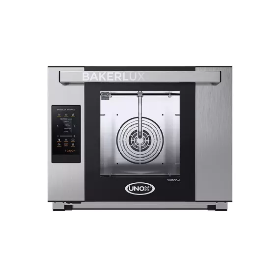Печь конвекционная электр. т.м. UNOX серии XEFR, модель XEFR-04HS-ETDP, 600x669x500мм, Мощность: 3,45 кВт, Напряжение: 220В. Панель управления: TOUCH, 99 программ. Температура: от 50 до 260°C. с помпой