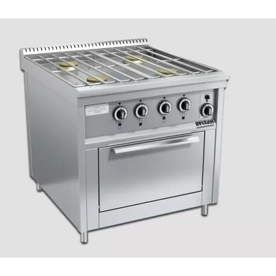 Габариты: 800х700х850 мм, 30000ВтПлита из нержавеющей стали с 4-мя горелками по 6 кВт, съёмной решеткой из нержавеющей стали, газовым духовым шкафом, газконтроль, работа на природном или сжиженном газе, герметичная столешница, ножки плиты регулируются по высоте.