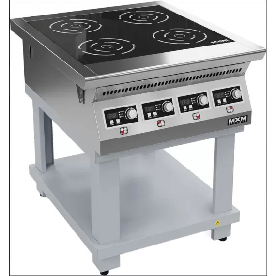 Габариты 840х850х860 мм, материал нержавеющая сталь, стеклокерамика.4 независимых индуктора мощностью 3,5 кВт, 9 уровней мощности, температурный режим +60 +240 С.