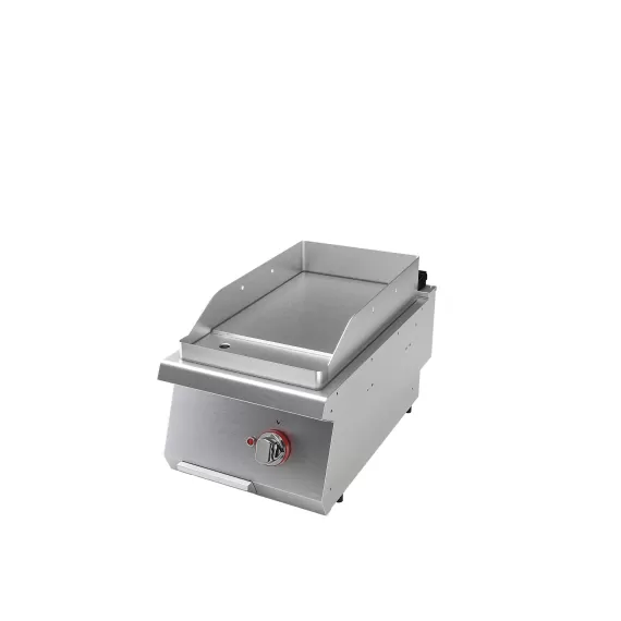 Габариты 400*730*280, вес 41 кг, сечение кабеля 5x2,5 мм. Поверхность жарочная изготовлена из нержавеющей стали, толщина покрытия 15/10 мм. Гладкое жарочное покрытие изготовлено из конструкционной стали, съёмное. Контроль температуры осуществляется при помощи термостата. По бокам и сзади расположены бортики, для предотвращения загрязнения. В комплекте с лотком для сбора жира, которое легко вынимается для очистки. Мощность 4,5 кВт, габариты в упаковке 420*800*530, вес брутто 48 кг, 380 В