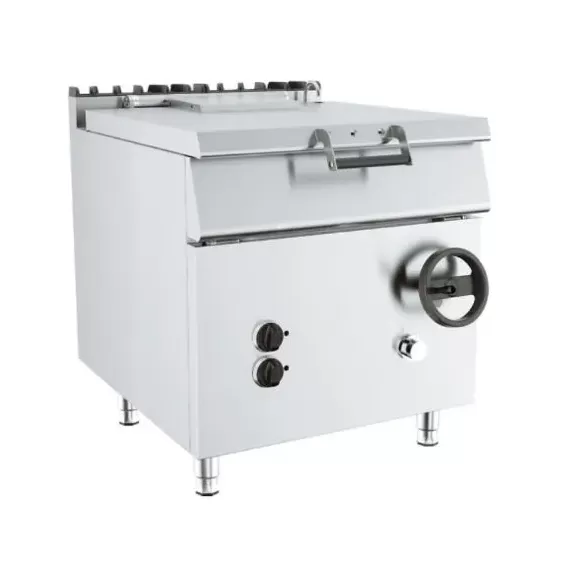 Габариты: 800х900х900 мм, 12000Вт, 380В. Напольная электрическая опрокидывающаяся сковорода, корпус выполнен из нержавеющей стали, регулируемые по высоте ножки, задняя чугунная решетка - покрыта устойчивой к царапиной эмалью, функция отключения при опрокидывании, откидная крышка на шарнирах, термостат, объем 80 литров, регулятор системы нагрева от 50 до 300 градусов, система ручного наддува, слив воды расположен спереди.
