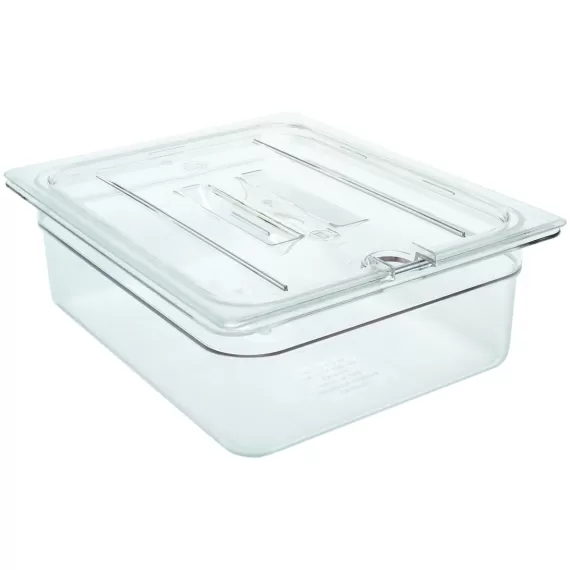 Крышка 60CWCHN 135 для GN1/6. Цвет: прозрачный. Размер: 16.2х17.6см. Материал: поликарбонат. Форма: прямоугольная, с утопленной ручкой с выемкой под ложку. Штабелируются. Ударопрочность - очень высокая. Пригодны для частой машинной мойки. Термостойкость: от -40 до +99С. Возможно нанесение логотипа.
