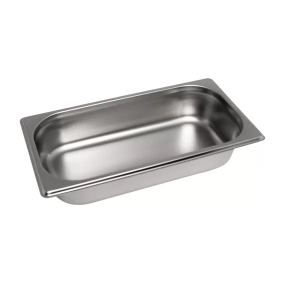 Гастроемкость 13065E 1/3 глубиной 65 мм. Материал: нержавеющая сталь. Размеры: длина 32,5 см, ширина - 17.6 см, глубина 6,5 см.