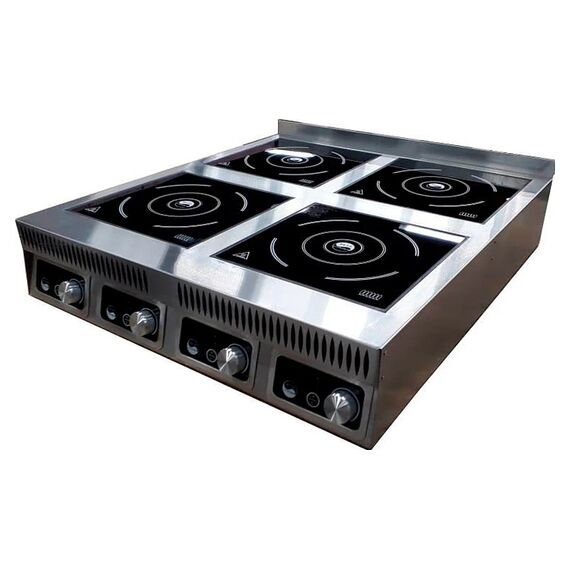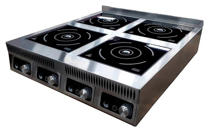 735x805(845Ручки)x185(220 с бортом)мм, 380B, 14кВт, 4 конфорки 300х300мм, сенсорное упр-ие, , цифровой дисплей, 10 ур. мощности (500-3500Вт) и темп.(60-240С), Корпус из нержавеющей стали AISI 304, термостойкое стеклокерамическое покрытие 4 мм. Максимальная рекомендованная нагрузка на одну конфорку 30 кг.