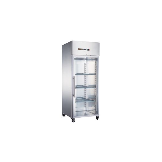 740х830х2010 мм, 230В, 0,495 кВт, 650 литров, -15...-18 С, 1 стеклянная дверь, полки в комплекте 3хGN2/1, динамическое охлаждение, на колесах, нержавеющая сталь, замок, подсветка
