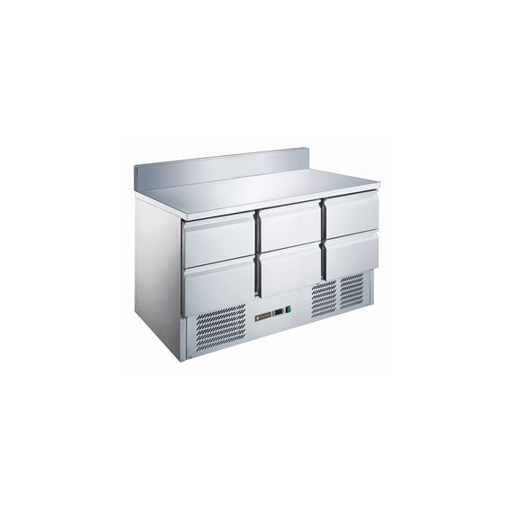 1365x700x976 мм, 230В, 0,24 кВт, 368 л, +2…+8 С, 2+2+2 ящика, столешница из нержавеющей стали, с бортом, нижнее расположение холодильного агрегата, вентилируемое охлаждение
