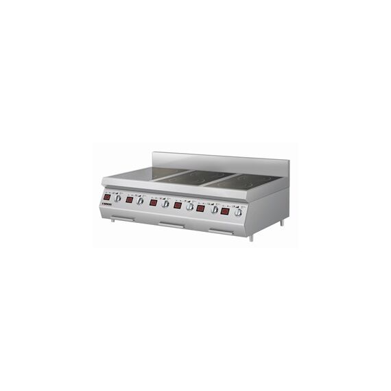 1200х760х475 мм, 400В, 21 кВт, 6 конфорок 3,5 кВт, 30 уровней мощности, режимы подогрев и медленное кипение, установка данной модели на плоские поверхности допускается только при использовании инсталлированных ножек, входящих в комплект, при установке на специальную подставку ножки используются как крепежные винты.