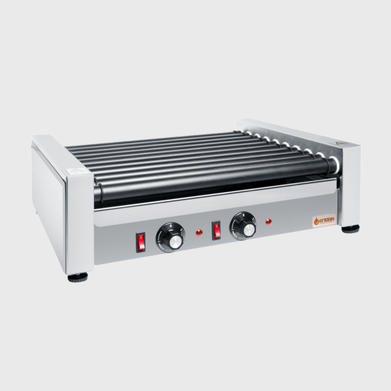 Профессиональный роликовый гриль РГ-10.45 предназначен для разогрева сосисок, колбасок, сарделек и аналогичных продуктов. Используется как в стационарных кухнях, так и в отдельно стоящих модулях (АЗС, фудтраки, фудкорты и кафе). Корпус гриля выполнен из нержавеющей стали. Покрытие роликов-тефлон. Устройство оснащено усиленным кабелем, защищенным кабельным вводом и надежным энергорегулятором марки EGO. Имеет 2 рабочие зоны нагрева. Обладает высокой скоростью приготовления и производительностью при компактных размерах устройства.