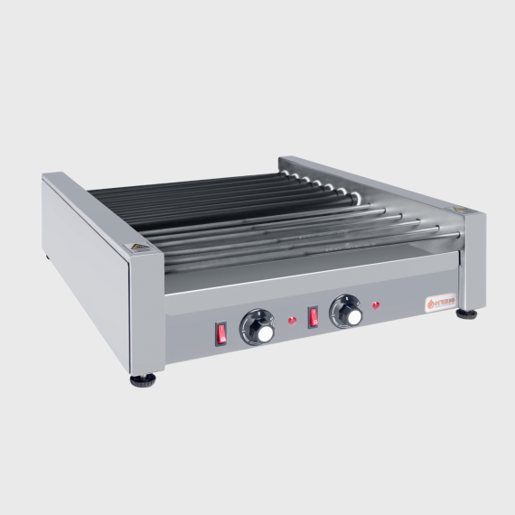 Комбинированный роликовый гриль КРГ-80.45 предназначен для подогрева сосисок, колбасок, сарделек или котлет. Устройство совмещает в себе две рабочие зоны: ролики для сосисок и котлетницу или плейт ( в зависимости от доукомплектации). Ролики медленно вращаются для равномерного приготовления продукта. Внутри роликов находятся нагревательные элементы (ТЭНы), температура которых регулируется с помощью терморегулятора. Для котлетницы или плейта предусмотрена регулировка режима нагрева вторым терморегулятором марки EGO. Данная модель является универсальной, функциональной и эффективной на объектах с высокой проходимостью клиентов.