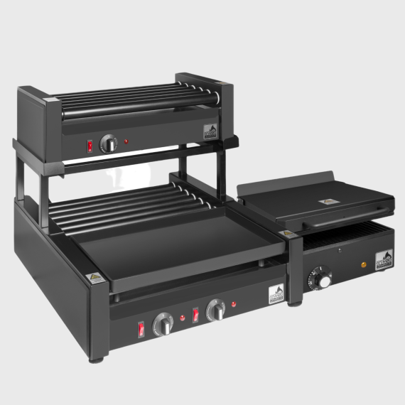 Гриль-станция от «ОГНИВО». Представляет комбинацию устройств: контактный гриль КГ-01, комбинированный роликовый гриль с плейтом КРГ-80.45 и роликовый гриль РГ-6.45, установленный на подставке. Все устройства выполнены в эксклюзивном черном корпусе. Используется на пунктах питания АЗС, мобильных фудтраках и фудкортах с высокой проходимостью клиентов для изготовления френч-догов и аналогичных продуктов. Рабочие поверхности покрыты тефлоном.