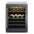 Лаконичный дизайн шкафа придаёт интерьеру современный вид. Чёрный корпус и рамка из бесшовной нержавеющей стали добавляют элегантности и солидности. В этой модели использовано панорамное освещение синего, янтарного и белого цвета, которое обеспечивает равномерную подсветку всех полок. (Освещение плавно включается при открывании дверцы, а через пару секунд после закрытия плавно гаснет.) Дополнительно у данной модели шкафа предусмотрен демонстрационный режим, во время которого освещение не гаснет. Такая функция помогает демонстрировать винную коллекцию Вашим друзьям и близким.