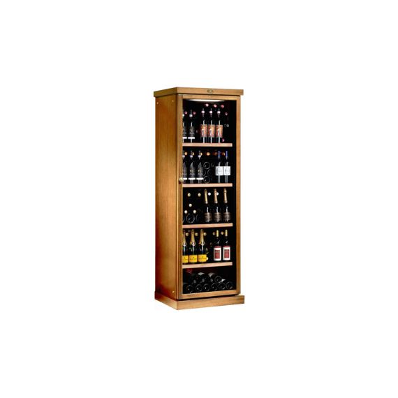 Модель оснащена статической системой охлаждения на базе компрессора SECOP (Danfoss), которая кроме охлаждения вина еще и сохраняет оптимальную влажность внутри камеры. Комплектуется шкаф девятью деревянными полками.