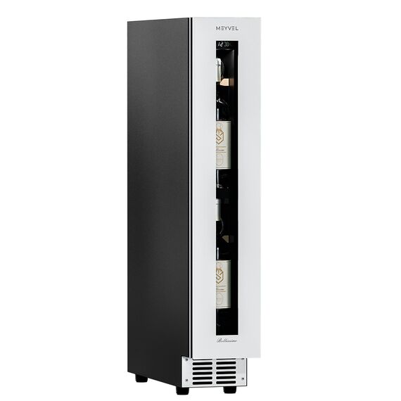 Компрессорный винный шкаф Meyvel MV9NH-KWT1 несмотря на небольшой размер, обладает большой вместимостью и дает возможность разместить до 9 бутылок. Располагаются они на держателях из массива бука. Внутреннее пространство шкафа поддерживает комфортную для вина температуру от +5℃ до +20℃ и имеет самую большую вместимость среди аналогичных винных шкафов. Преимуществом этой модели является возможность разместить внутри одну высокую бутылку. Так же, MV9NH-KWT1 данная модель поддерживает влажность в диапазоне 60-80%, как в настоящем винном погребе.