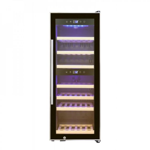 Новый компрессорный винный шкаф COLD VINE C50-KBF2 прекрасно подойдет для хранения частной коллекции вина, так как позволяет разместить в двух отдельных температурных зонах 38 бутылок типа «Бордо» с поддержанием в каждой из них отдельной температуры, идеальной для хранения белых и красных вин. С помощью простой и понятной сенсорной панели можно установить температуру в верхней зоне от +5°C до +12°C, а в нижней от +12°C до +20°C.