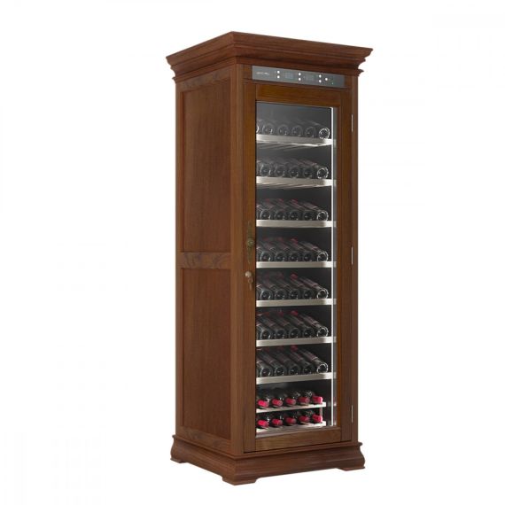 Изысканный дизайн модели делает ее абсолютным выбором большинства: MV108-WN1-C оснащен деревянным коробом из Американского дуба в ореховом цвете, благодаря чему винный шкаф становится оптимальным вариантом, подходящим для установки в любом дизайнерском интерьере. Отличительная особенность MV108-WN1-C заключается в том, что данная модель является самой вместительной среди всех представителей шкафов данной линейки: внутреннее пространство рассчитано на хранение до 108 бутылок типа Бордо (0,75 л). Габариты модели позволяют разместить ее максимально функциональной в любой зоне: кухне, столовой, гостиной.