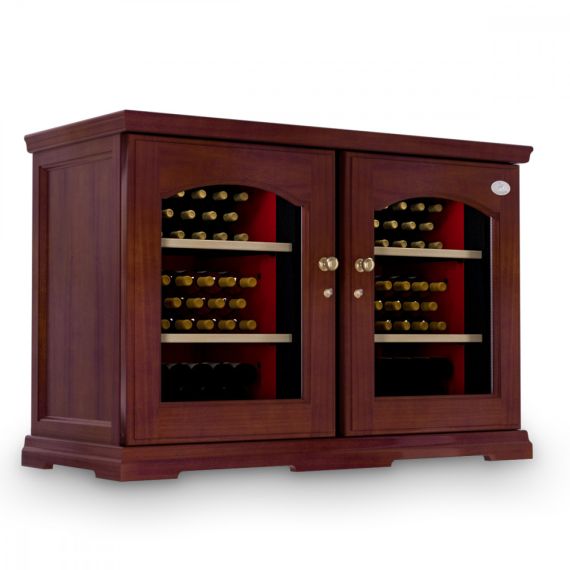 Шкаф оснащен статической системой охлаждения на базе компрессора SECOP (Danfoss), которая понижает температуру вина и сохраняет оптимальную влажность внутри камеры. Комплектуется шкаф шестью полками.
