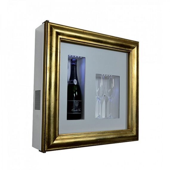 IP Industrie Quadro Vino № 12 - компактный охлаждаемый стенд для бутылки и двух бокалов. Минимальная глубина и возможность монтажа в стену позволяет ему быть установленным даже в очень небольшом пространстве.