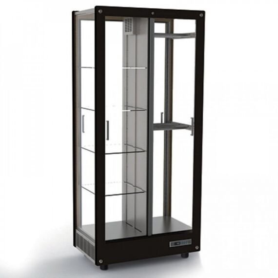 Установленные в витрину лампы, свет которых имеет естественный белый цвет, способствуют тому, чтобы продукция внутри всегда выглядела максимально презентабельно. Благодаря большому числу полок - до 5 штук, имеется возможность одновременно демонстрировать широкий ассортимент различных изделий и при этом не волноваться об их сохранности.