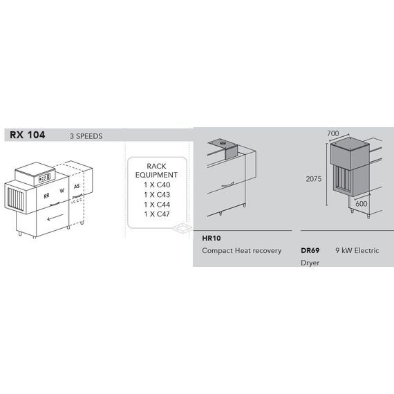 МАШИНА ПОСУДОМОЕЧНАЯ DIHR RX 104 DX+DDE+HR10+DR69/ДЕЛЕНИЕ 2 ЧАСТИ