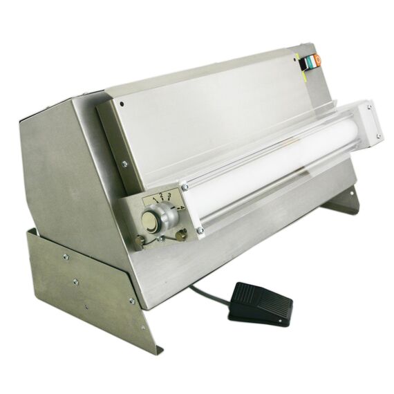 700х370х430мм, Материал рабочей поверхности валов (скалок) полипропилен, Материал корпуса нержавеющая сталь, Установка настольная, Регулировка толщины раскатки ручная, 2 раскатывающих валика (длина 500 мм) из специального материала, исключающего прилипание, развод валиков регулируется 0…4 мм, равномерная раскатка, размер заготовки 350*50 мм., масса не более 0,35 кг, техническая производительность 120 кг/ч, асинхронный двигатель мощностью 250 Вт, 220В, допустимая непрерывность работы до выгрузки 8 ч, корпус из высококачественной нержавеющей стали, компактная (с возможностью крепления к стене), легкая очистка. Учтены все меры для безопасной работы, возможность управления с помощью педали.