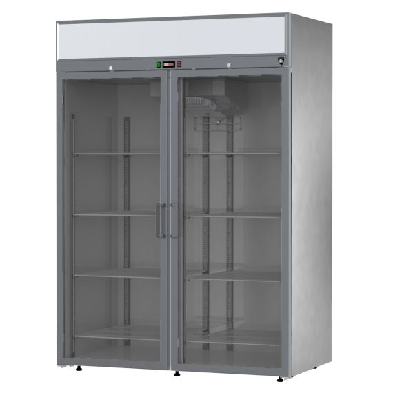 1400х860х2015мм, -5…+5С, 1400л, 2 двери стекло, нержавеющая сталь, R290, подсветка на фронтальной панели, клапан шредера, верхнее расположение агрегата, 230В, 50 Гц, тип охлаждения динамический, оттайка автоматическая при помощи ТЭНов, с системой испарения конденсата. Терморегулятор эл. блок. ПЭН обогрева трубки слива конденсата. Кол-во полок 10, подсветка, замок. Суточный расход электроэнергии 9,5кВ/ч. Потребляемая мощность 0,85раб/0,418отт кВт. Стандарт Gastronorm GN 2/1. Вес 190кг. Толщина стенки корпуса 40мм.