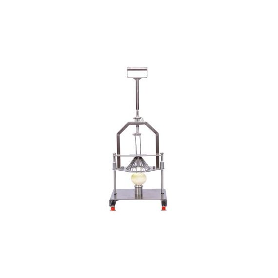350х260х860 мм, 9,5 кг, механическое устройство из нержавеющей стали для нарезки и раскрытия лука в форме цветка, максимальный диаметр лука 10см, острые ножи режут лук на 24 одинаковых дольки, нескользящие ножки, подходит для резки луковиц разных размеров благодаря дополнительному кронштейну
