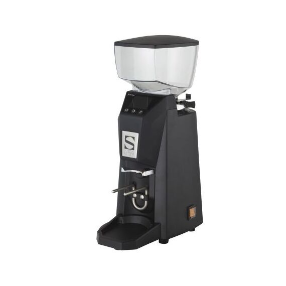 198х352х540 мм, 14.9 кг, 1,1 Квт, кофемолка ON DEMAND, уровень шума 63 Дб, Производительность 25 кг/час, 7 г менее, чем за 1 секунду, 3000 об./мин., алюминиевый корпус - цвет черный, индивидуальный помол для одинарной и двойной порции. Пульсирующий режим, Вместительность бункера 1 кг. Диаметр жерновов - 63,5 мм. Регулировка помола шагом менее 0,02 мм. LCD дисплей. Обнаружение держателя фильтра. Автоматическое распределение дозы кофе, регулируемая по высоте вилка для фильтр-холдеров