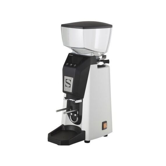 198х352х540 мм, 14.9 кг, 1,1 Квт, кофемолка ON DEMAND, уровень шума 63 Дб, Производительность 25 кг/час, 7 г менее, чем за 1 секунду, 3000 об./мин., алюминиевый корпус - цвет белый, индивидуальный помол для одинарной и двойной порции. Пульсирующий режим, Вместительность бункера 1 кг. Диаметр жерновов - 63,5 мм. Регулировка помола шагом менее 0,02 мм. LCD дисплей. Обнаружение держателя фильтра. Автоматическое распределение дозы кофе, регулируемая по высоте вилка для фильтр-холдеров