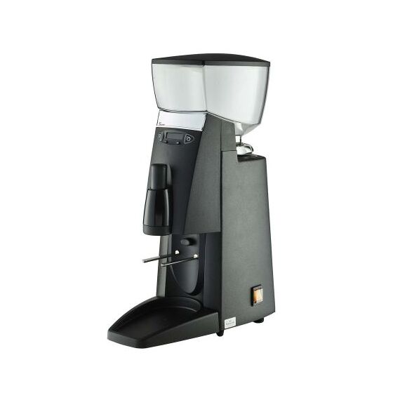 198х397х577 мм, 15 кг, 1,1 Квт, 63 Дб, Производительность до 20-25 кг/час, 7 г/с, 2800 об./мин., алюминиевый корпус - цвет черный, индивидуальный помол для одинарной и двойной порции. Вместительность бункера 1 кг. Диаметр жерновов - 63,5 мм. Вилка для всех видов фильтр--холдеров. Мобильное темпирующее устройство с тремя диамептрами темпера: 53 мм, 55 мм, 57 мм